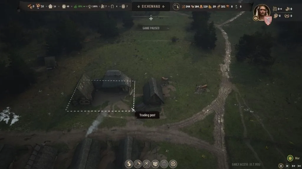 To bolster your settlement’s finances, establish a trading post to facilitate import and export activities with neighboring regions. Capitalize on surplus resources by exporting them for profit or supplementing shortages through imports. Leverage strategic trading opportunities, such as exporting excess berries during seasons of abundance, to generate substantial revenue and foster economic stability in Manor Lords.