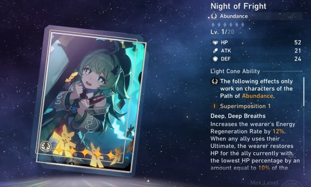 - Light Cone: 5-star Night of Fright, 4-star Post-Op Conversation
