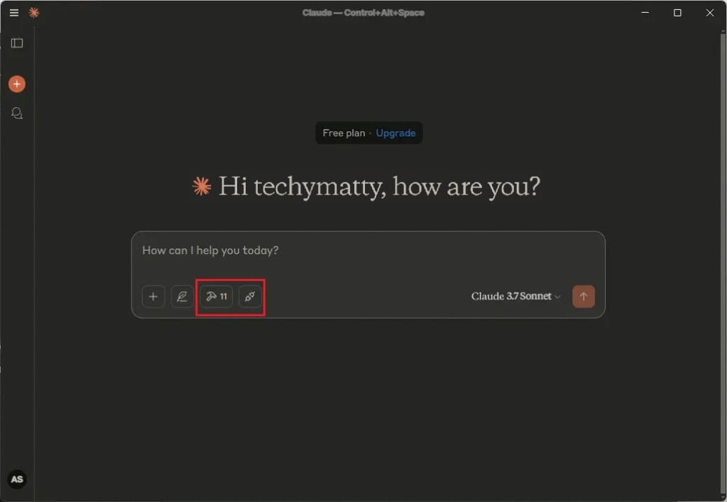 Now, open the Claude Desktop app, and you should see the hammer and connector icons. These icons indicate that your MCP server is successfully set up and ready to use in Claude.