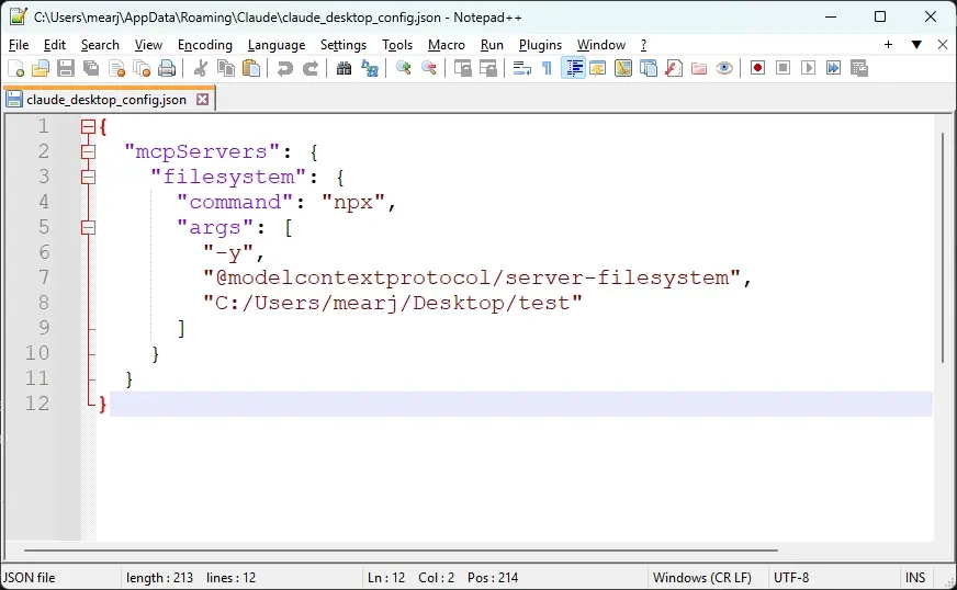 - Open the “claude_desktop_config.json” file with your preferred code editor (I’m using Notepad++).
