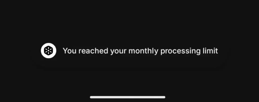 A Reddit user recently reported receiving a message stating, “You reached your monthly processing limit” on the Essential Space app. They mentioned using the feature for tracking expenses, generating content ideas, and setting reminders.