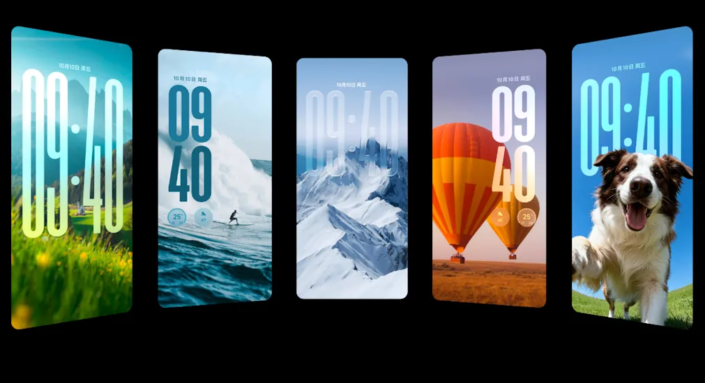The new clocks in OriginOS 6 offer full customization, allowing users to move and position them anywhere on the screen. The clock design incorporates drop-shadow-like effects, making the text blend naturally with the interface. Users can also resize the clocks to create a sense of depth.
