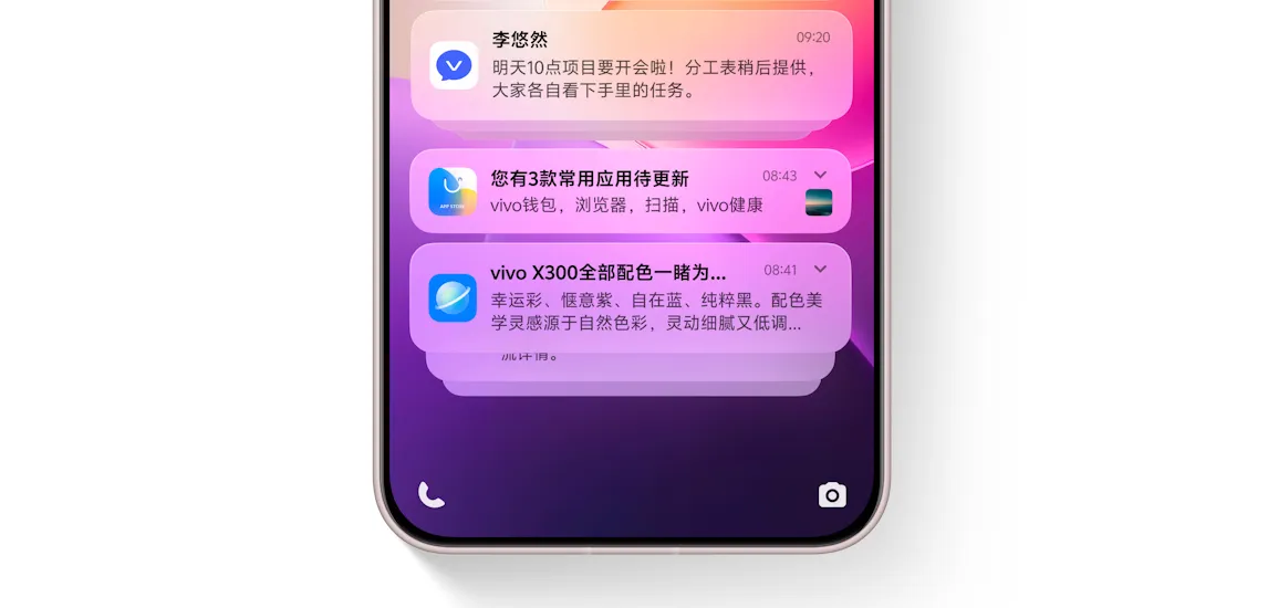 Notification stacking in OriginOS 6 helps keep the notification panel organized and clutter-free. When multiple notifications arrive, the system automatically groups them in a clean and visually appealing way.
