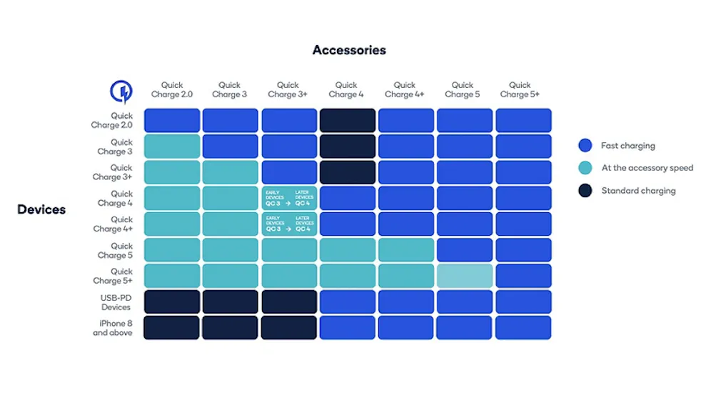 Another significant feature of Quick Charge 5+ is its backward compatibility. In other words, QC5+ will work with existing Quick Charge adapters and accessories, as well as USB Power Delivery PPS, making it highly versatile.