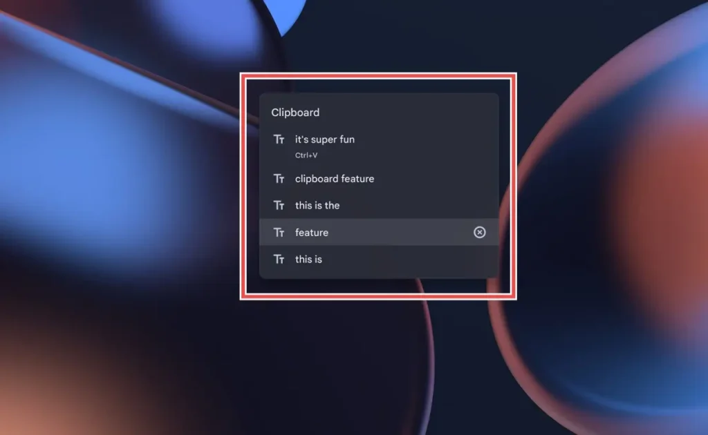 ChromeOS includes a Clipboard History tool, similar to the one on Windows, allowing you to store and paste multiple text fragments, images, links, or screenshots. Press Launcher + V to open clipboard history, choose the item you want, and hit Enter to paste it.