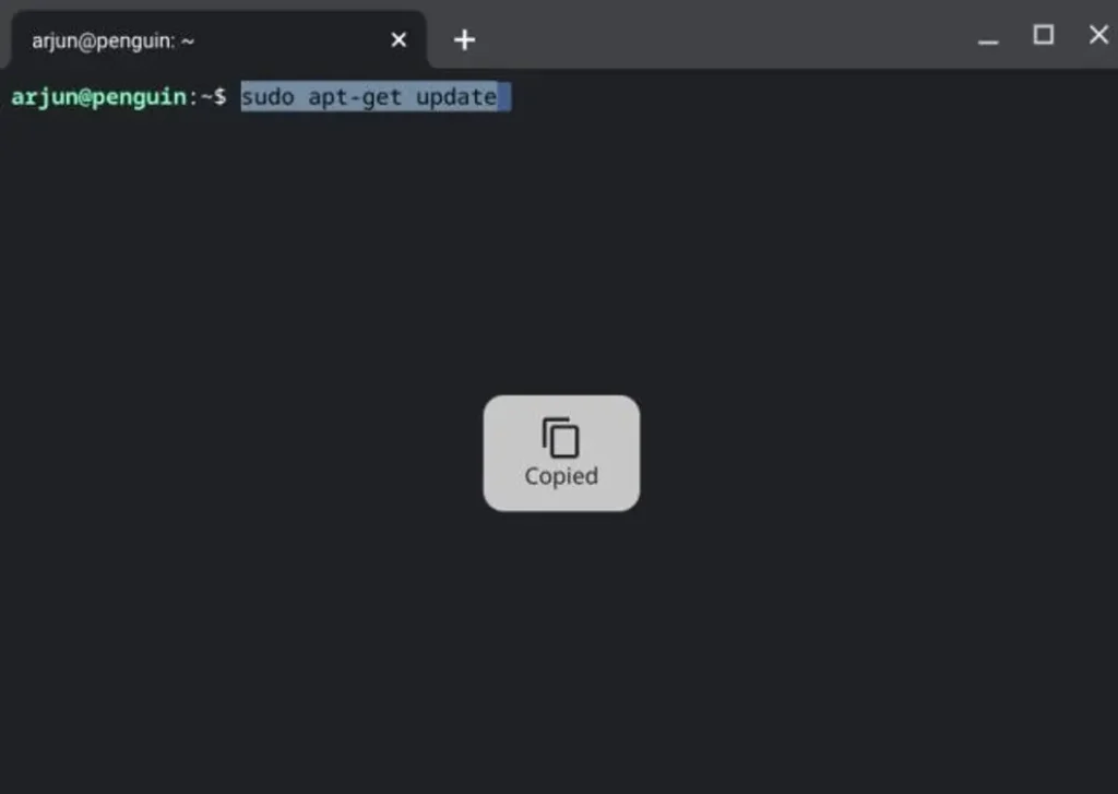 If you frequently use the Linux Terminal on your Chromebook, these shortcuts are extremely useful. To copy a command, simply highlight it with your mouse or touchpad—ChromeOS copies it automatically without requiring a shortcut.